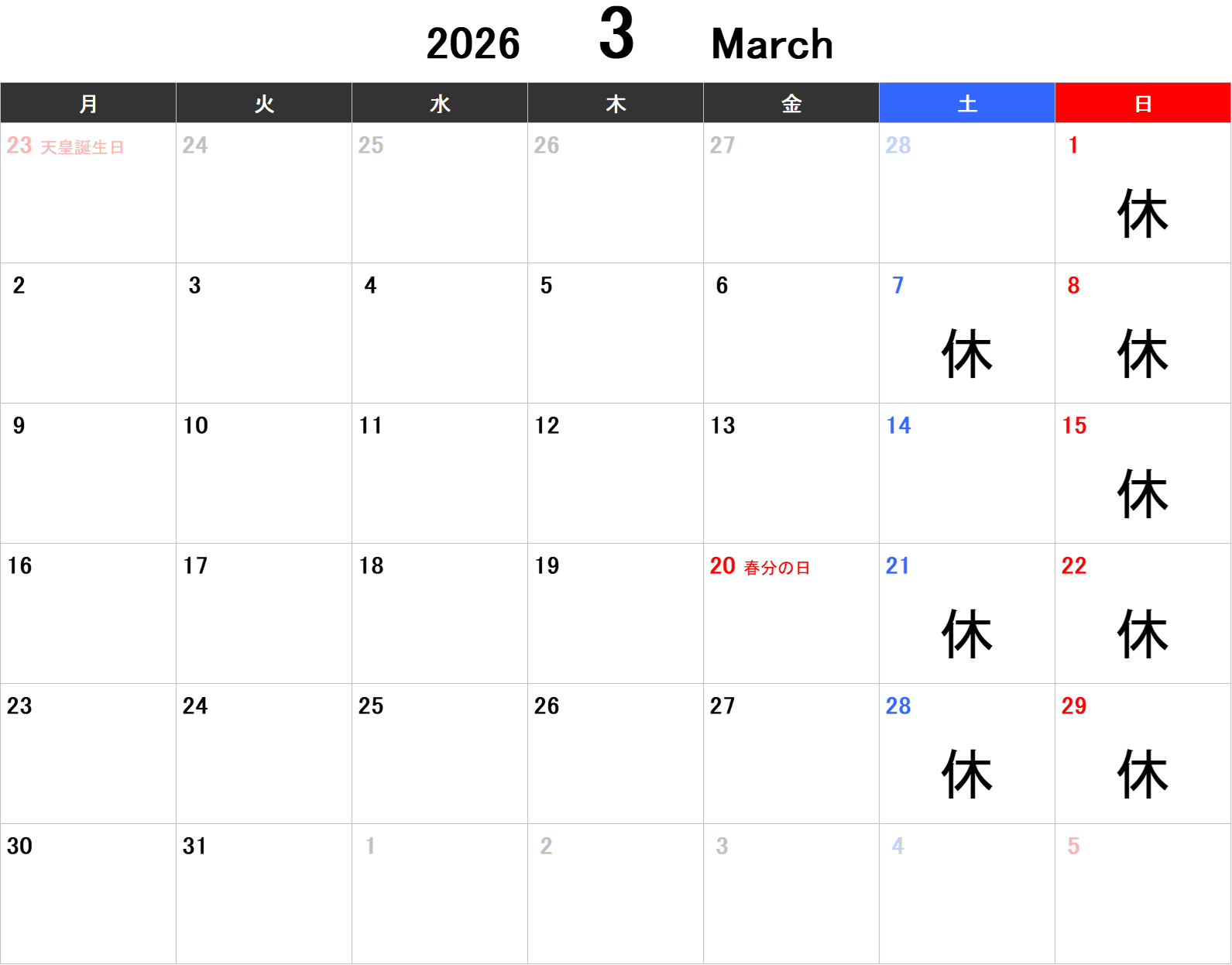 3月の営業日とお休みをお知らせします!